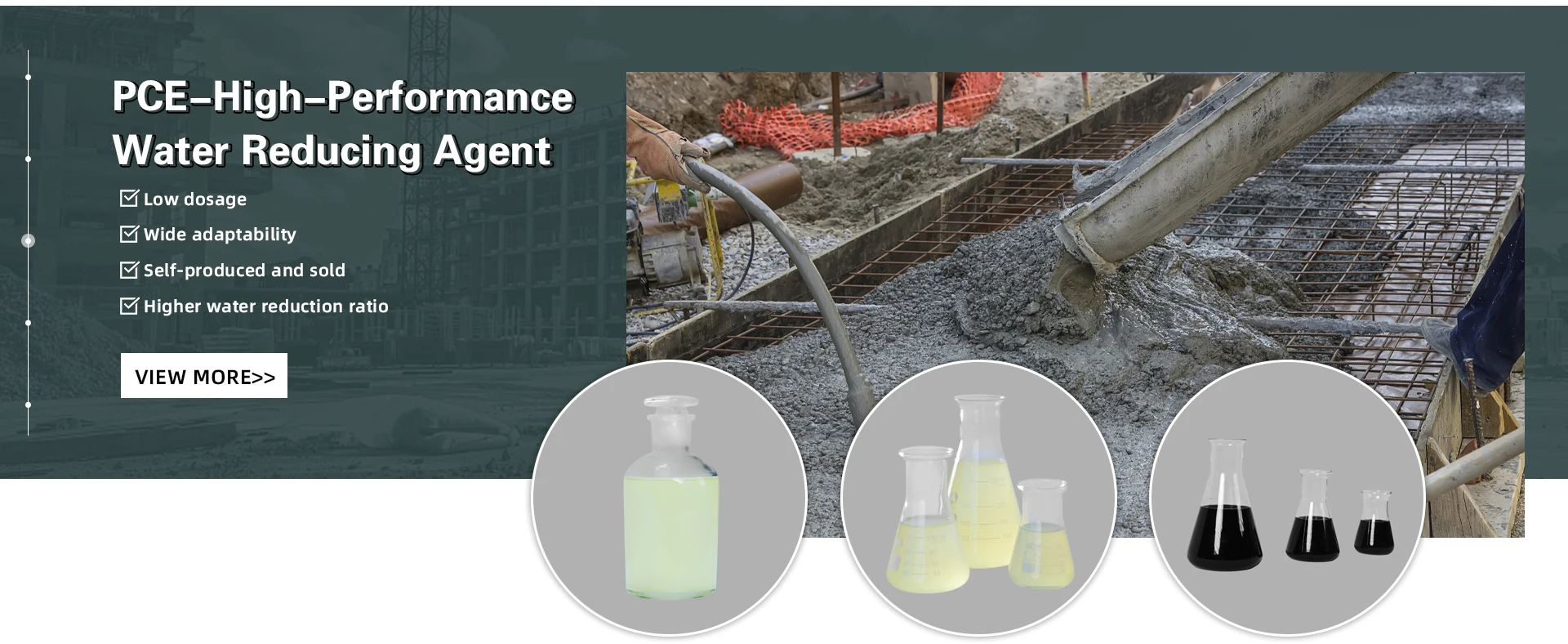 Productos principales:Superplastificante policarboxílico, superplastificante de alta eficiencia, agente acelerador, agente de lechada, mortero de arrastre